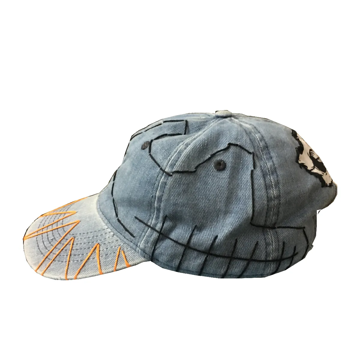Skull Tooth Personalized Patch Design Washed Denim Hat