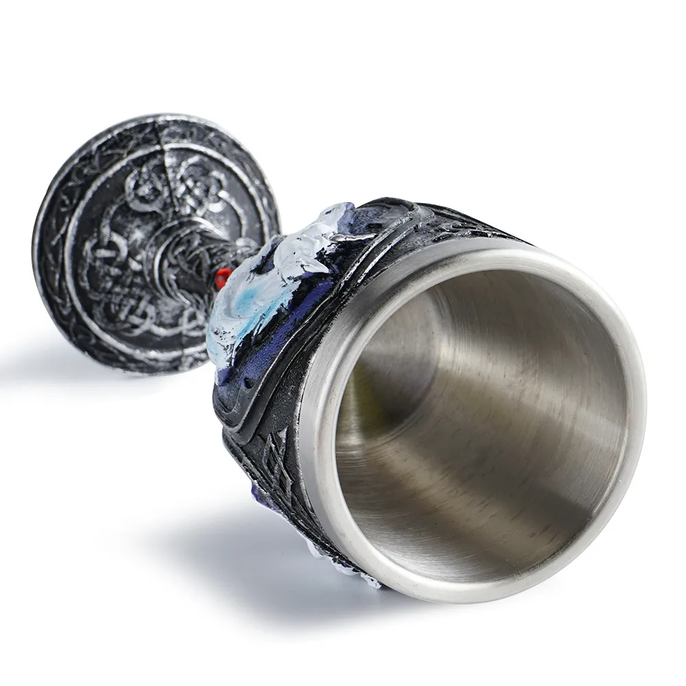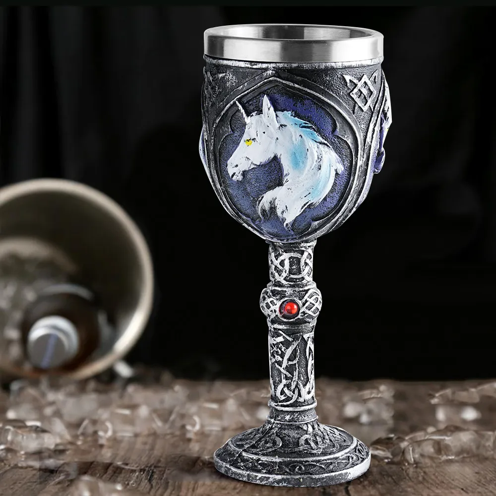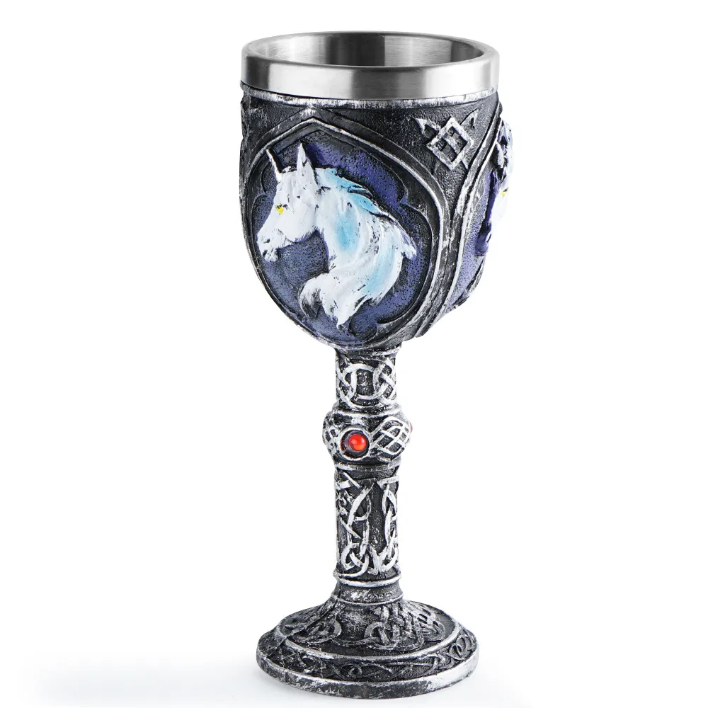 Crafted from durable resin and clear glass, the wine glass is designed for both aesthetic appeal and practical use. The resin base ensures stability while the glass bowl provides a smooth drinking experience.