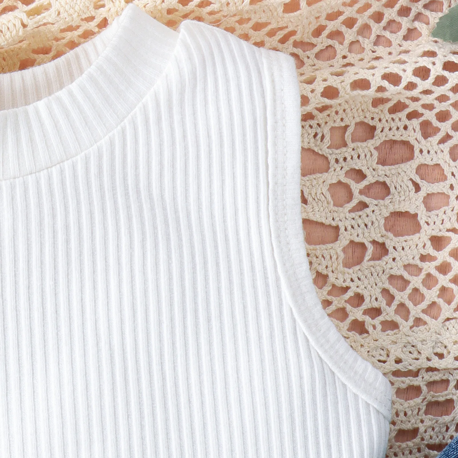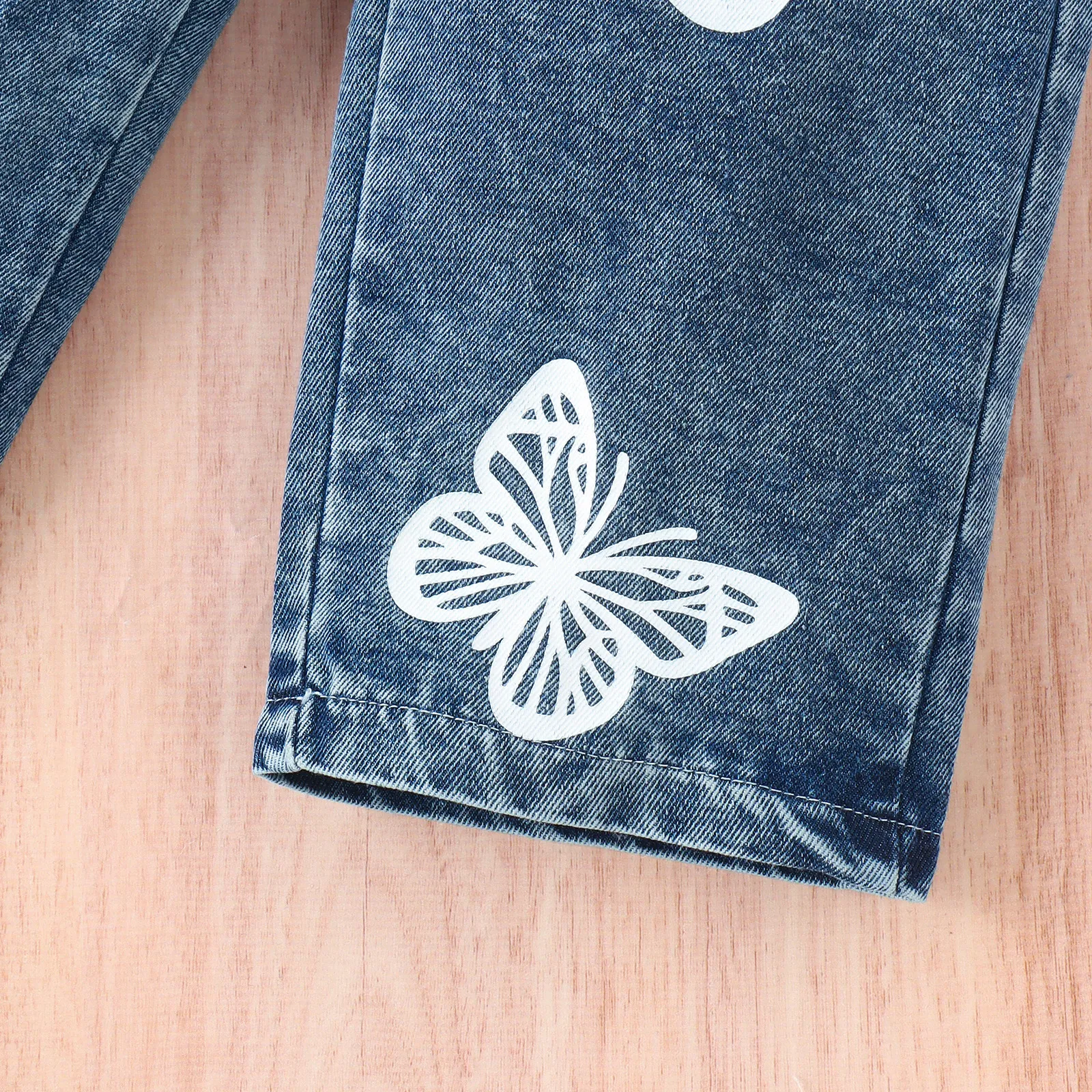 Sleeveless Vest Butterfly Print Washed Jeans Girls Suit