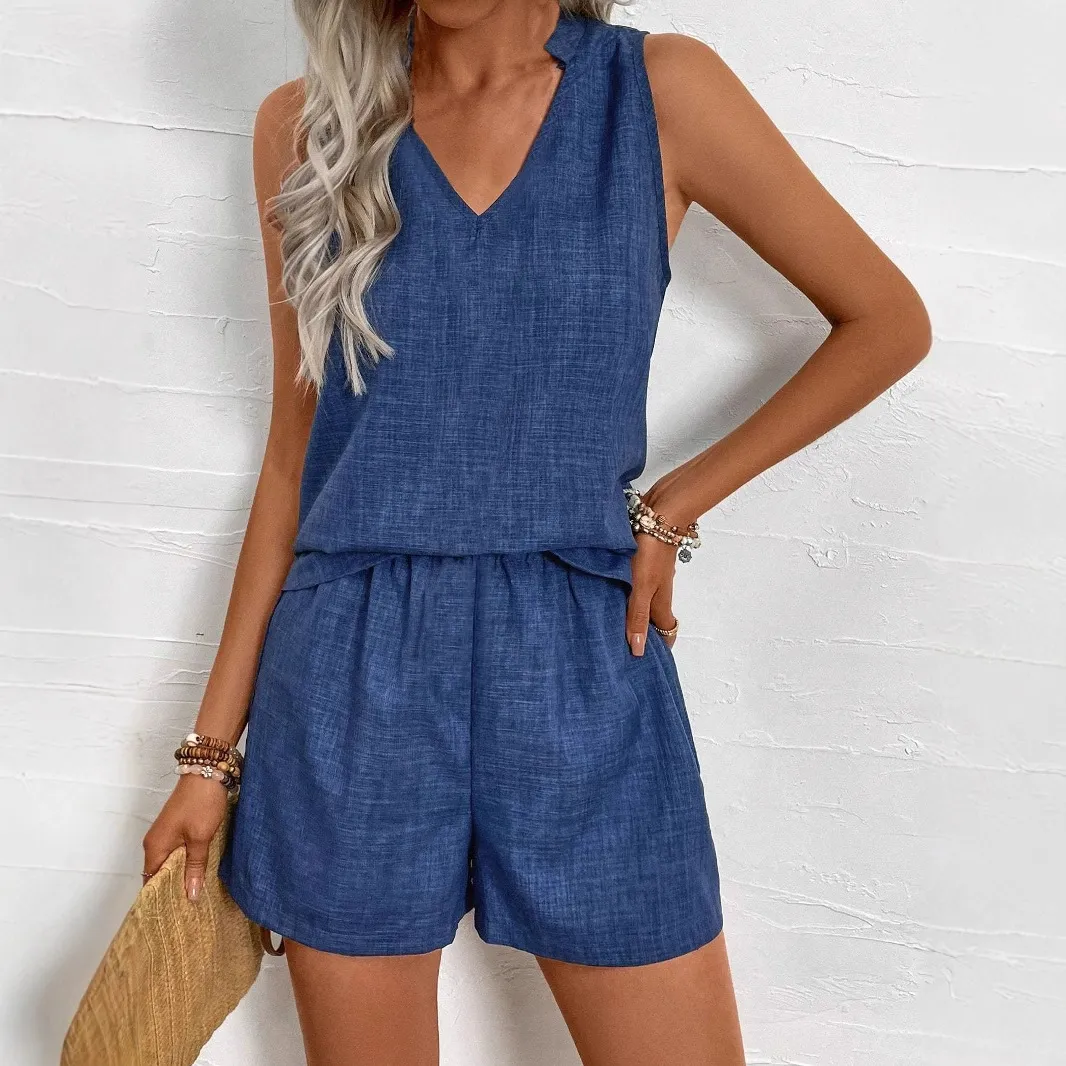 Effortless Style with Comfort in Sleeveless Vest and Shorts Set