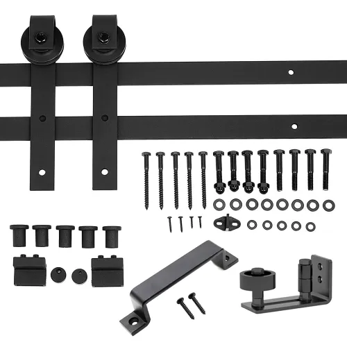 Complete Hardware Set: Includes everything you need to install a sliding barn door: track, rollers, hangers, and mounting