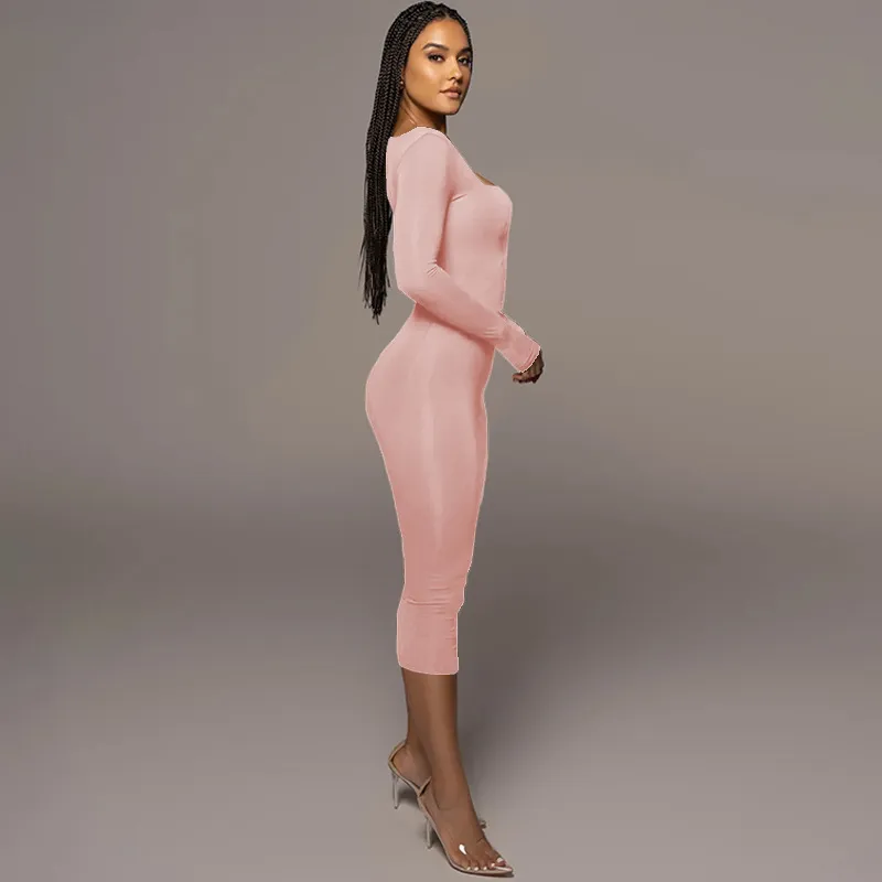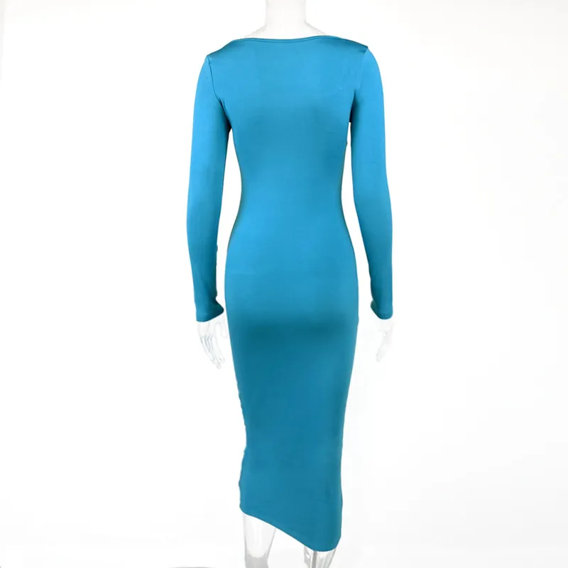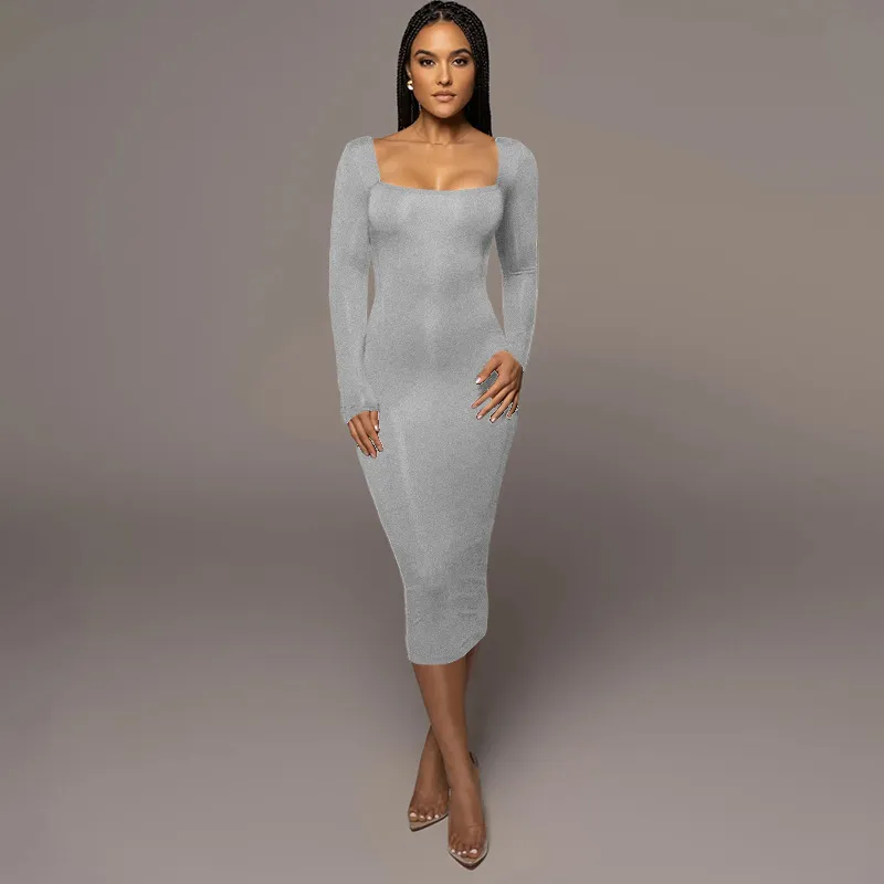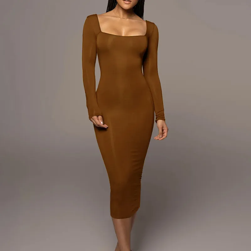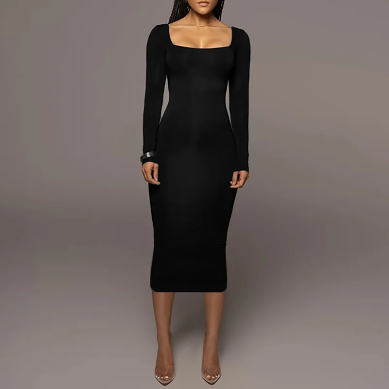 Slim Fleece Square Collar Long Sleeve Dress
