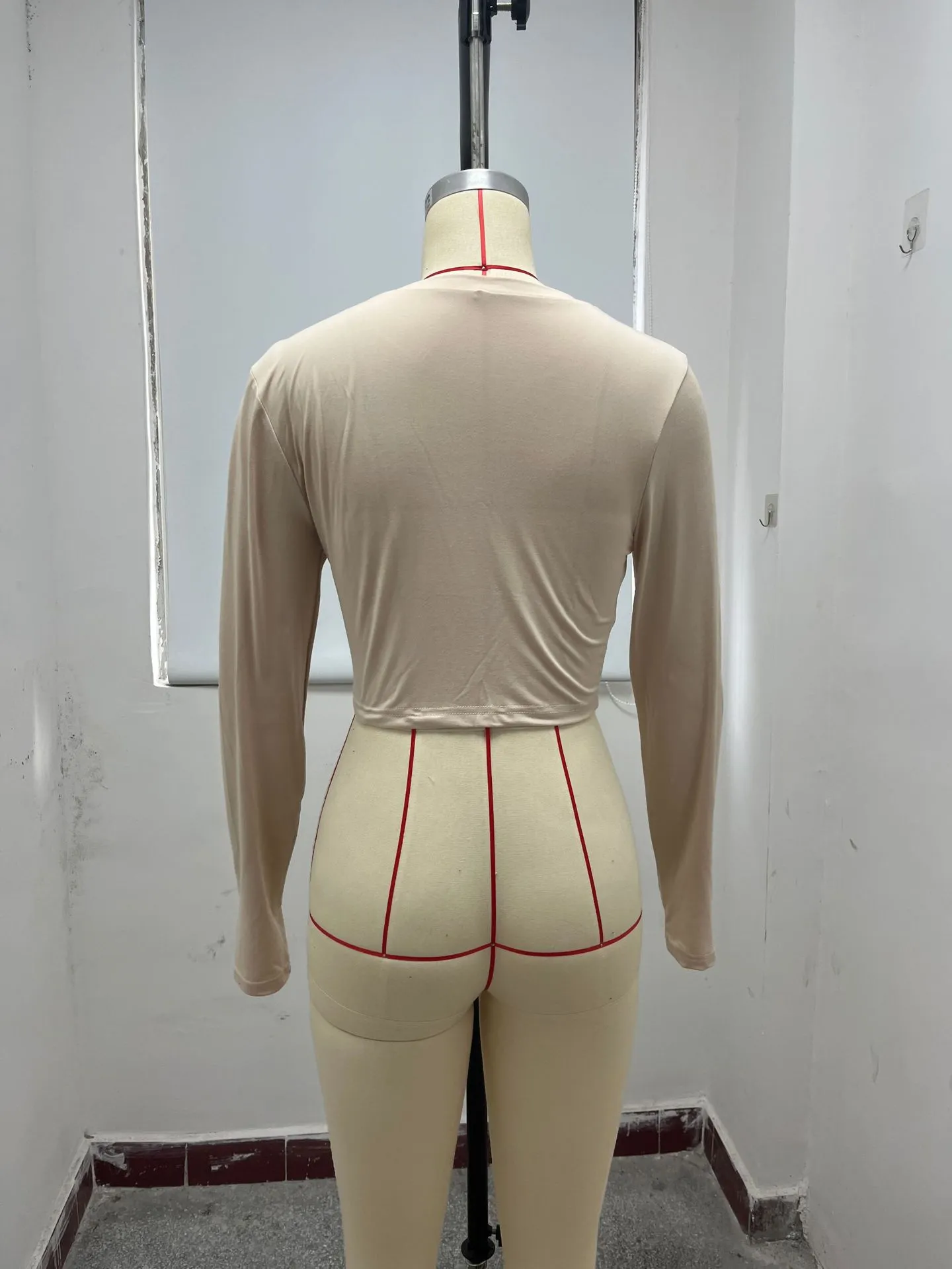 Design and Material This top features a sleek, slim fit that hugs your body in all the right places, enhancing your silhouette. The long sleeves provide a balance of coverage and style, making it suitable for both warm and cool weather. The crop top design adds a playful and trendy vibe, perfect for layering or wearing on its own. Made from high-quality, stretchy fabric, this top ensures maximum comfort and flexibility, allowing you to move freely while maintaining its shape and fit.