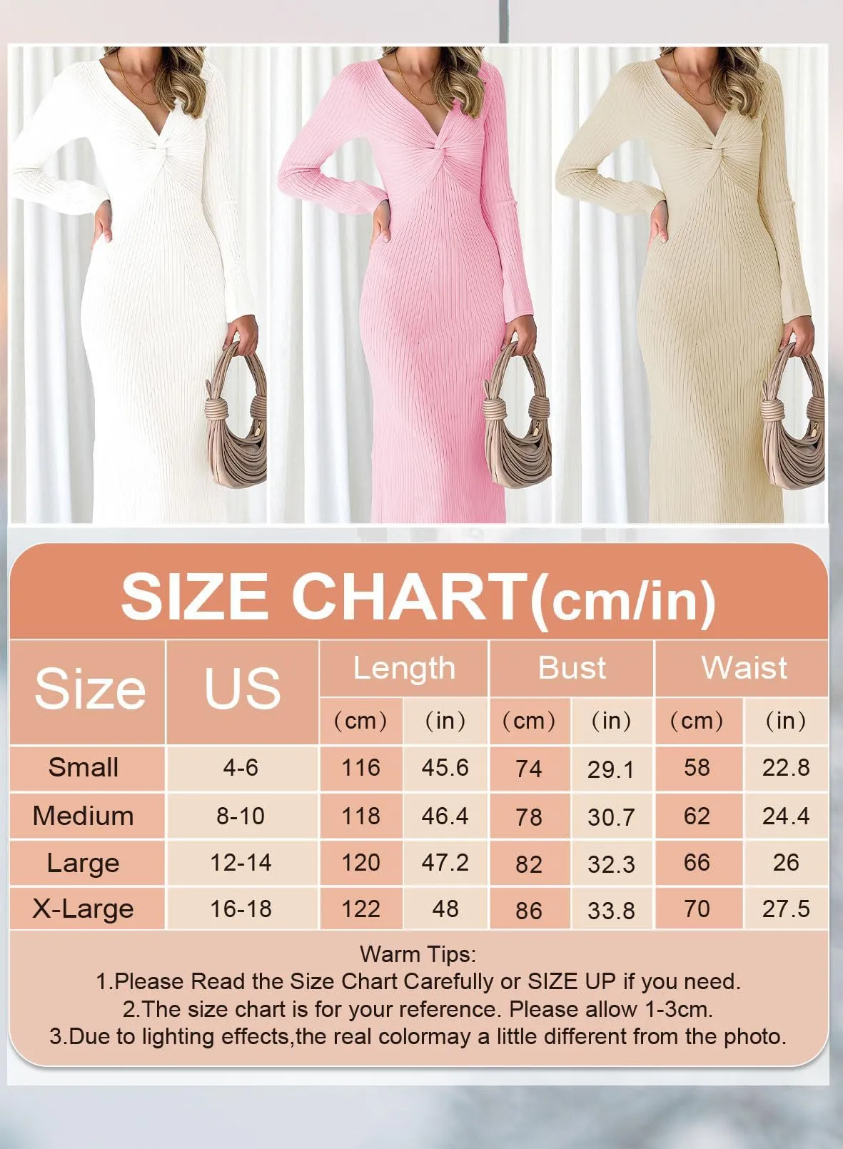 - Style: Long sleeved dress/ Women's slim fit dress/ Ribbed knit dress/ Women's sweater dress/ V-neck dress/ Sexy Bodycon Slim Midi Dresses