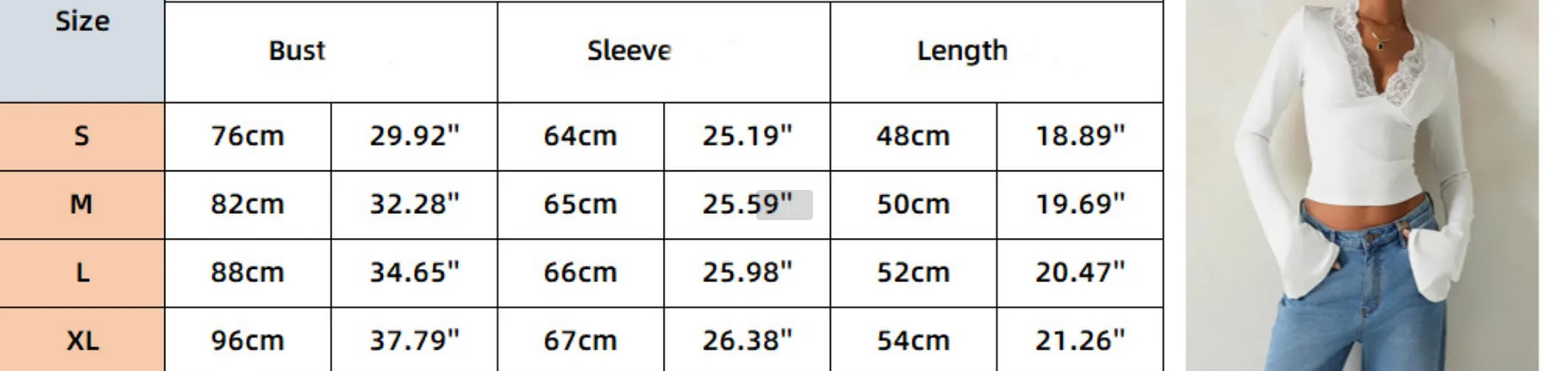 Slim V-neck Lace T-Shirt Ins Fashion Trumpet Sleeve Long-sleeved Top Women Clothing