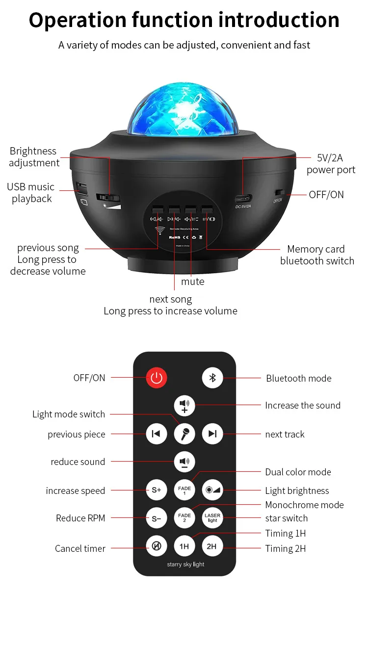 Small Bowl Starry Sky Projection Lamp USB Bluetooth Music Rotating Water Ripple Laser Atmosphere