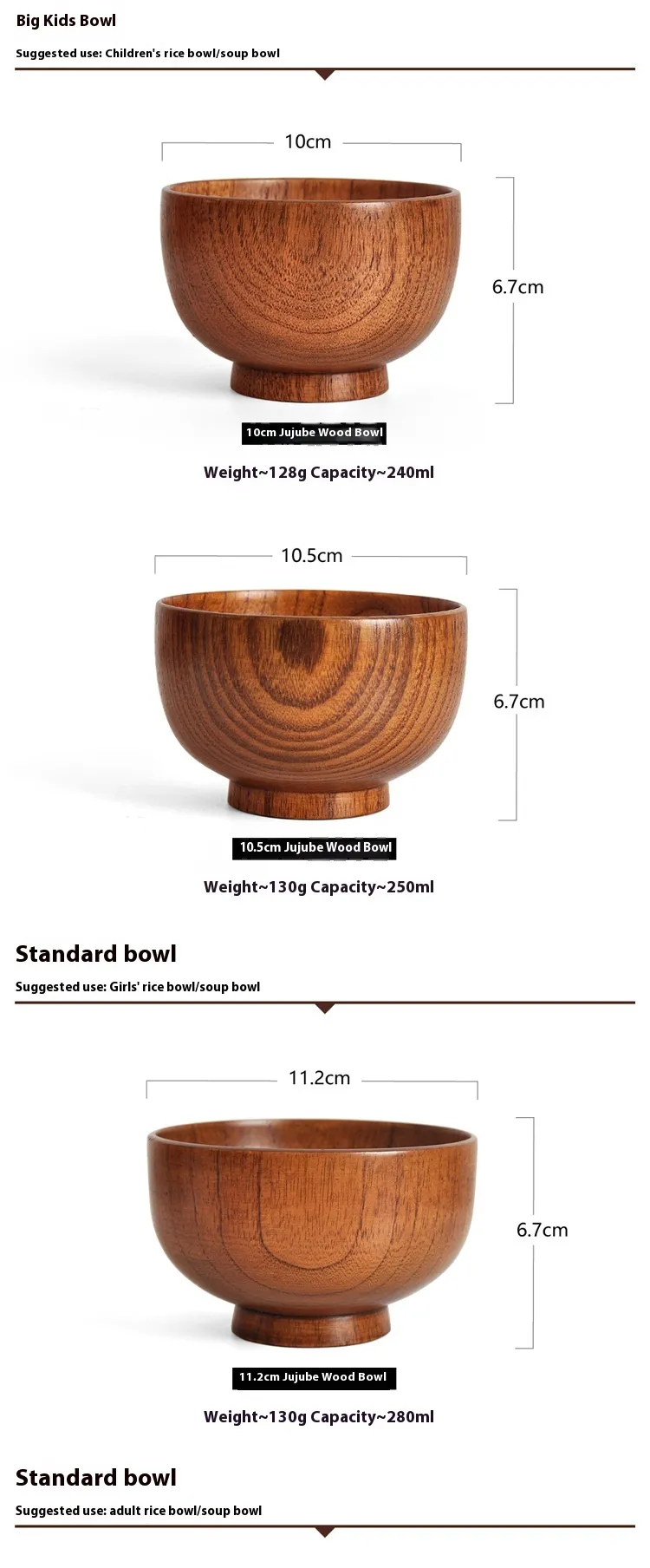 Color: 10 x6.7cm jujube wooden bowl, 10.5 x6.7cm jujube wooden bowl, 11.2x6.7cm wild jujube wooden bowl, 11. 5x 6.7cm wild jujube wooden