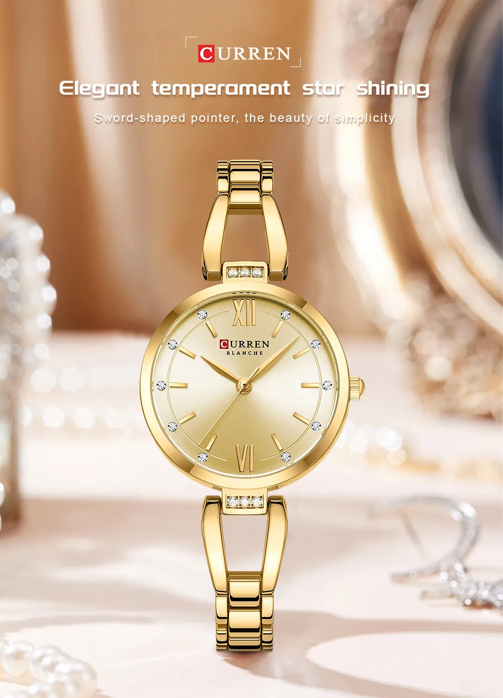 The watch features a small dial with a sleek, minimalist design, making it a timeless accessory that suits every outfit, from formal attire to casual wear.