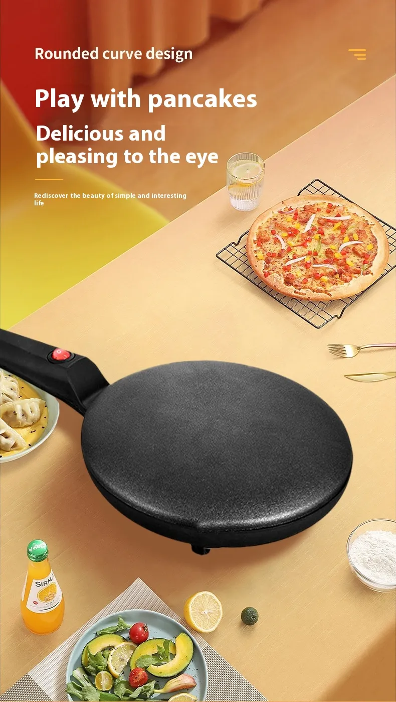 The Small Pancake Machine is an electric appliance designed specifically for making pancakes quickly and efficiently. With its compact footprint and thoughtful engineering, it provides a practical solution for cooking pancakes without the need for a full stovetop or additional cookware. Unlike traditional griddles or frying pans, this pancake machine offers precise heat distribution and a non‑stick cooking surface that prevents batter from sticking and ensures even cooking from edge to centre.