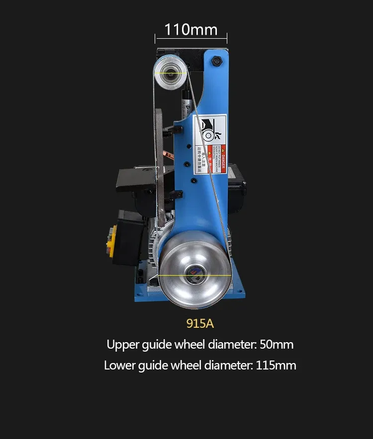 Enhance your woodworking and metalworking projects with our Small Vertical Sanding Belt Machine, an electric tool designed for efficient grinding, polishing, and knife sharpening. Compact yet powerful, this versatile sanding machine is ideal for hobbyists, DIY enthusiasts, and professionals alike. Its vertical design and adjustable sanding belt provide optimal control for a variety of tasks, from shaping wood and metal to sharpening knives and removing burrs with precision.
