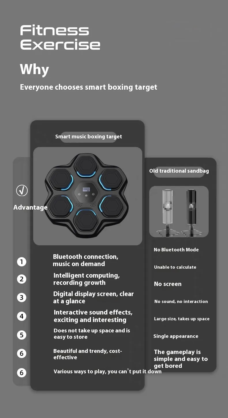 With the rising costs of gym memberships, the Smart Music Boxing Target offers an affordable and long-term fitness alternative. No additional equipment is needed, and the variety of training modes ensures you never get bored.