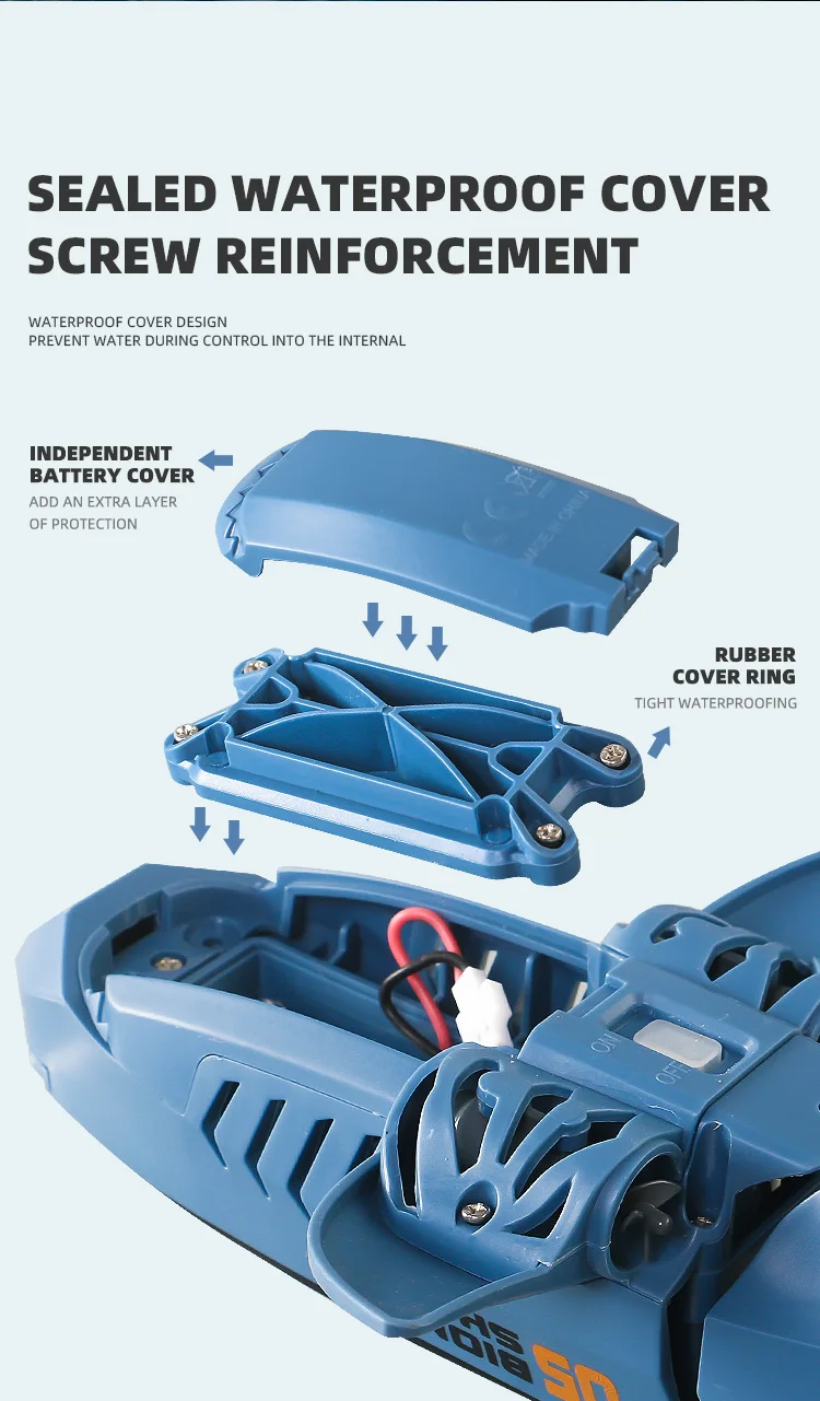- Electric Submarine Design: Equipped with a reliable motor for smooth swimming in water.