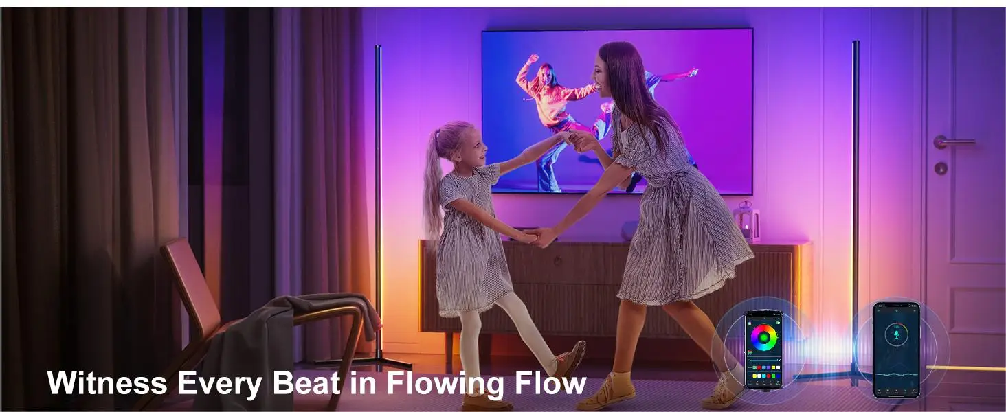 The LED floor lamp has a built-in low power consumption and soft light RGB strip, RGB/IC technology has 16 million colors to illuminate your