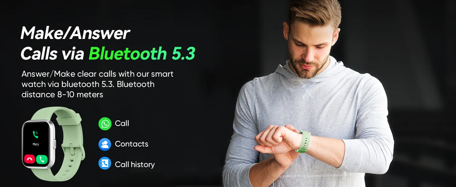 The Bluetooth calling feature allows you to make and receive calls directly from your watch, making it easy to stay connected while you're working out or when you're on the go. No need to pull out your phone—just answer with a tap on your wrist.