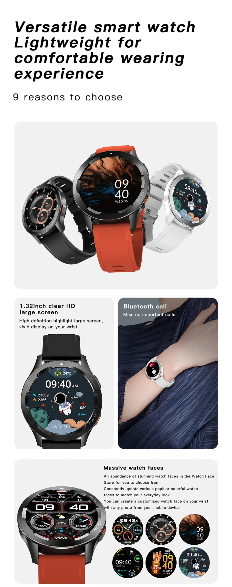 Customizable Watch Faces: Choose from a range of customizable watch faces to match your mood and style,