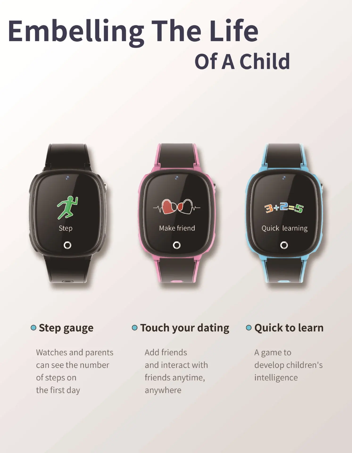 Designed for durability, the Children's Phone Watch is made with child-friendly materials that can withstand daily wear and tear. Its long-lasting battery ensures extended use, while the water-resistant design makes it suitable for various activities, from playtime to swimming. With parental controls and customizable settings, parents can tailor the watch to fit their child's needs. Equip your child with the Smart Watch for Children: Phone Watch, where connectivity meets safety and fun, empowering them to explore the world while staying secure.