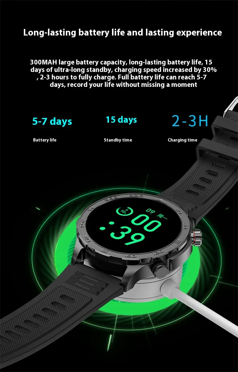 Long Battery Life: Lasts up to several days on a single charge, ensuring your watch stays functional for all-day use.