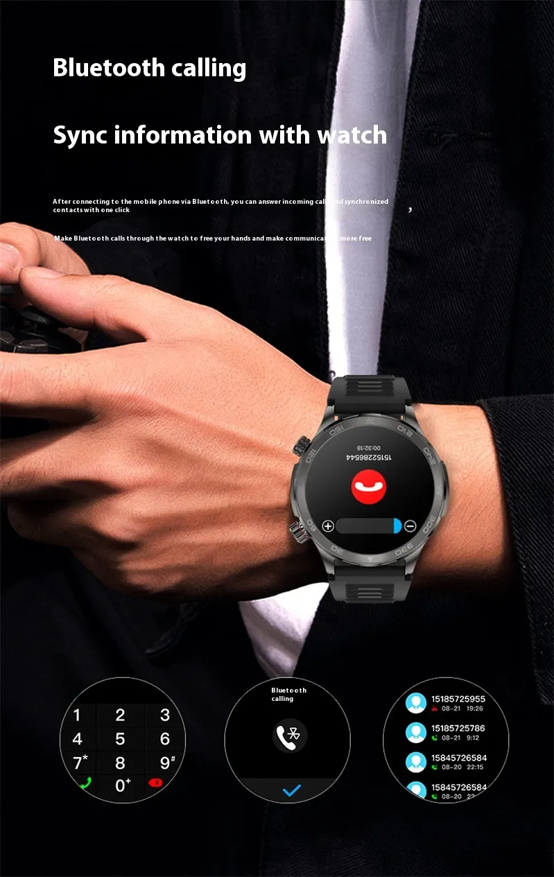 The Bluetooth calling feature allows you to make and receive calls directly from your wrist, which is especially convenient when you're exercising, driving, or unable to reach your phone. Stay connected effortlessly without needing to pull out your phone.
