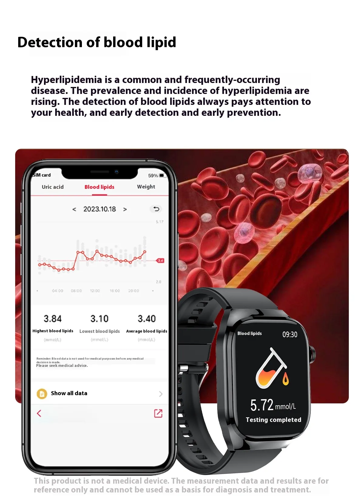The Smart Watch Micro Physical Examination Uric Acid Blood Glucose Blood Lipid Bluetooth Calling is designed for individuals who prioritize health monitoring and convenience in their everyday life. With advanced features like uric acid, blood glucose, and blood lipid tracking, this smartwatch provides the insights you need to manage your health proactively.
