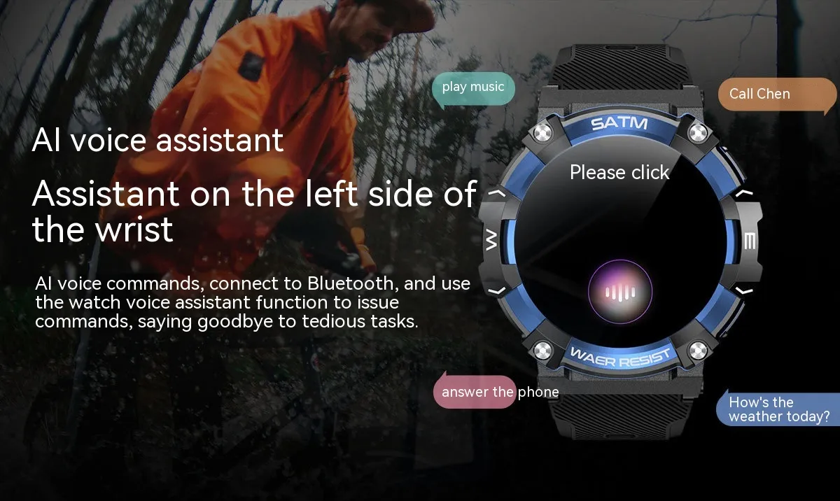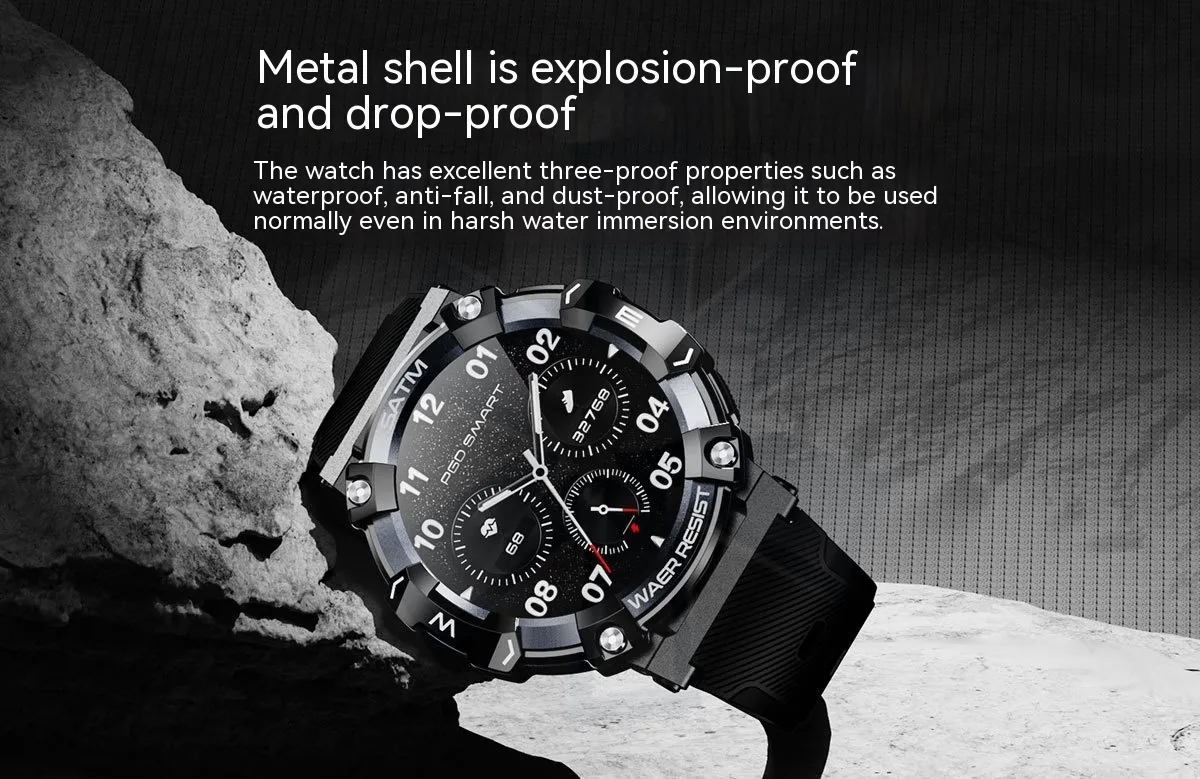 This smartwatch also features multiple sports modes, accurately tracking your activities such as running, cycling, and workouts, while the step counter and calorie tracking functions help you stay motivated in reaching your fitness goals. Built with a sleek and rugged design, this smartwatch is perfect for everyday wear, whether you’re at the gym, at work, or exploring the outdoors. The water-resistant build ensures it’s ready for all environments and weather conditions, making it durable and dependable.