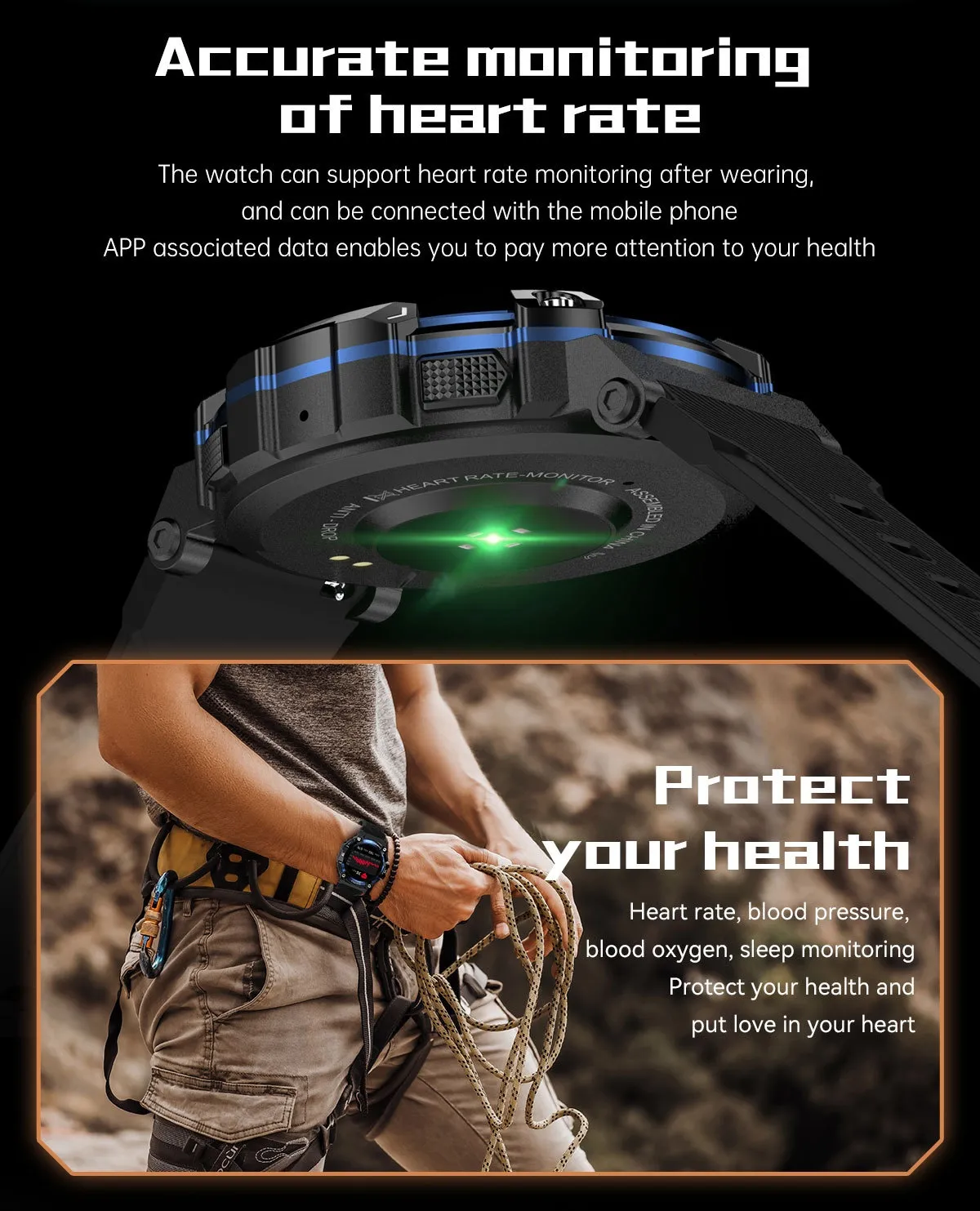 The Multi-Function Smart Watch for Men is a cutting-edge wearable designed to support an active and healthy lifestyle with a range of advanced features. Equipped with real-time heart rate monitoring, this smartwatch helps you stay on top of your cardiovascular health by tracking your heart rate throughout the day, whether you’re exercising, resting, or asleep. The sleep tracking function provides detailed insights into your sleep patterns, including deep sleep, light sleep, and awake time, allowing you to make adjustments to improve your overall rest and recovery.