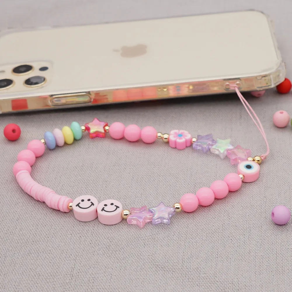 Smiley Soft Ceramic Mobile Phone Rope Hanging Jewelry Five-pointed Star Beaded Mobile Phone Chain Female