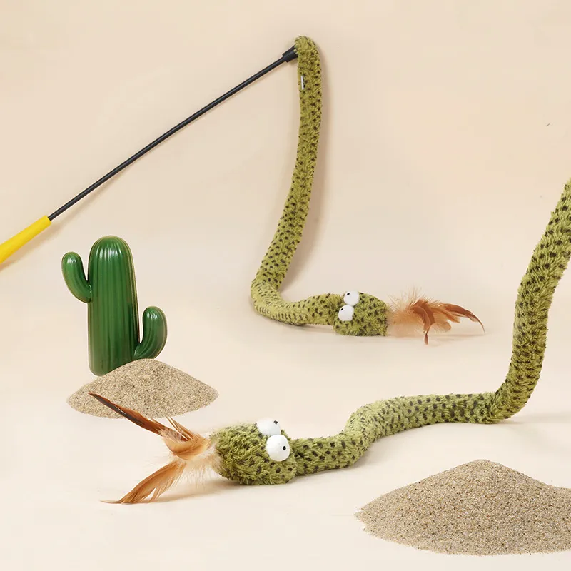 Snake Cat Teasing Stick - Interactive Feather Cat Toy