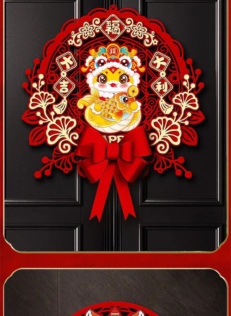 The Chinese character “Fu” (福) translates to “blessing” or “good fortune” and is a central symbol of Chinese New Year traditions. Displaying the Fu character on doors or walls is believed to attract wealth, health, and happiness to the household. In the Snake Year, this decoration also honors the zodiac sign, symbolizing wisdom, elegance, and transformation, making it a meaningful addition to your festive décor.