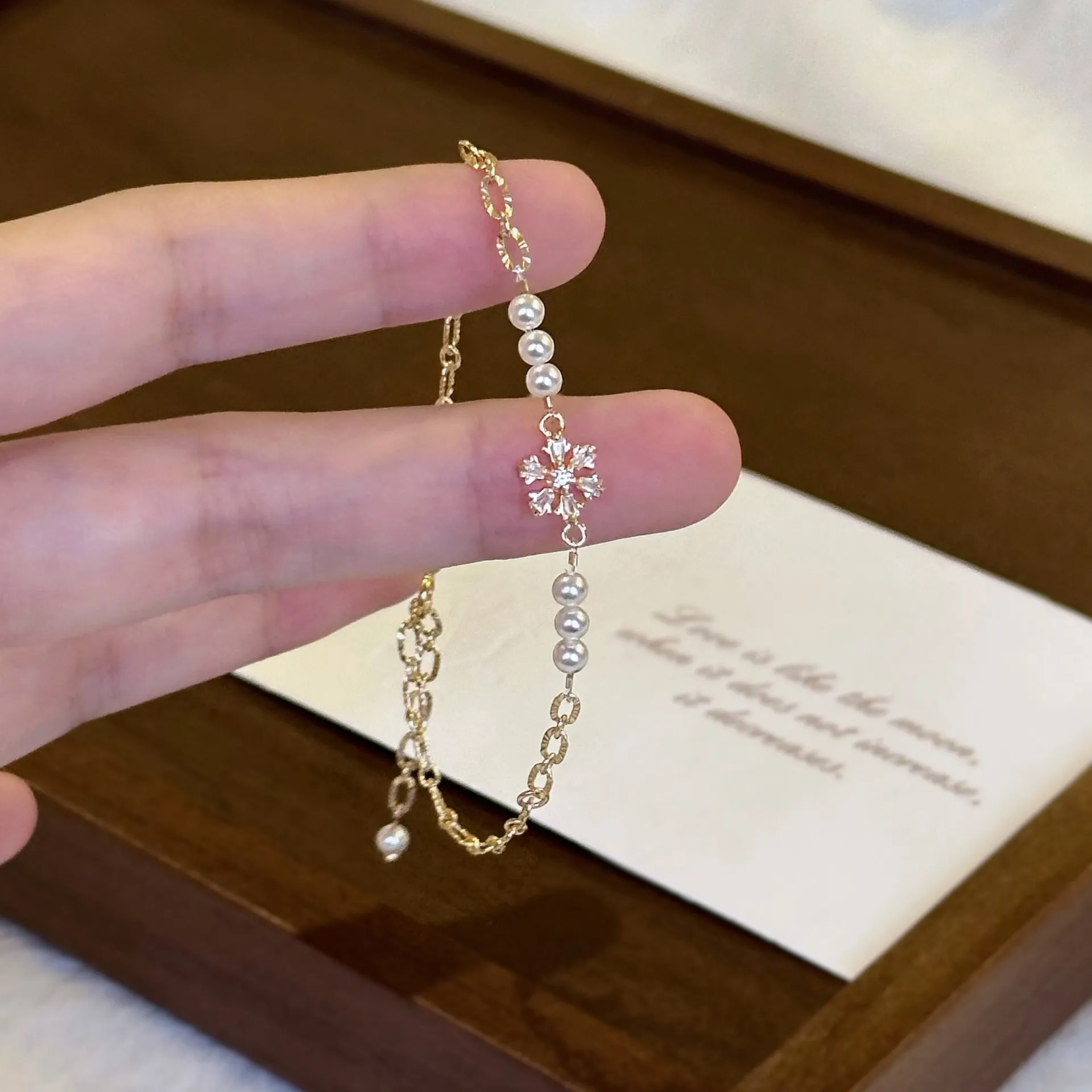 Snowflake Zircon Pearl Bracelet Female Niche Beaded