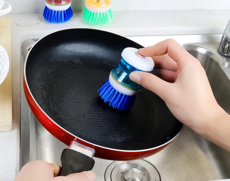 The Soap Dispensing Palm Brush is the ultimate cleaning tool for any household, combining convenience and efficiency in one compact design. With its built-in soap reservoir, this innovative brush allows you to dispense the perfect amount of soap with a simple press of your palm, making cleaning tasks easier and more efficient. Ideal for both kitchen and bathroom cleaning, this brush helps tackle tough messes with minimal effort, saving you time and reducing the need for excess cleaning products.