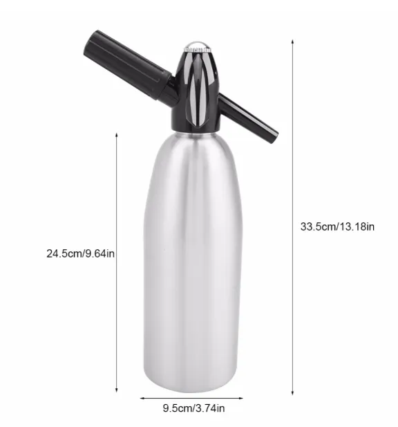 - Reusable CO₂ canisters for multiple bottles of sparkling water.