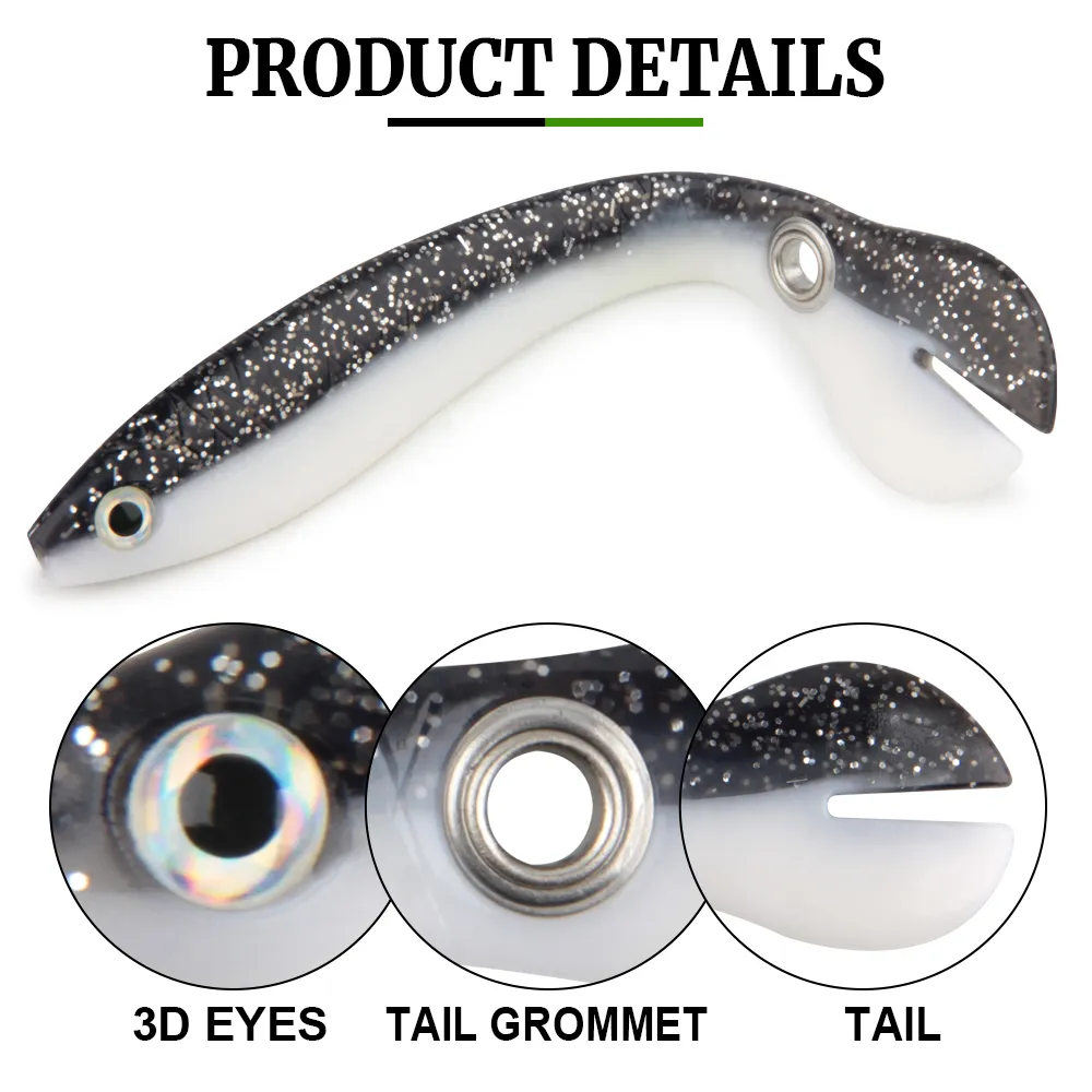 .High Quality – The premium soft plastic fishing lures are durable, reusable, resilient and not easy to tear. This fishing bait with a metal hole in tail is easy to setup and suitable for all kinds of fishhooks.