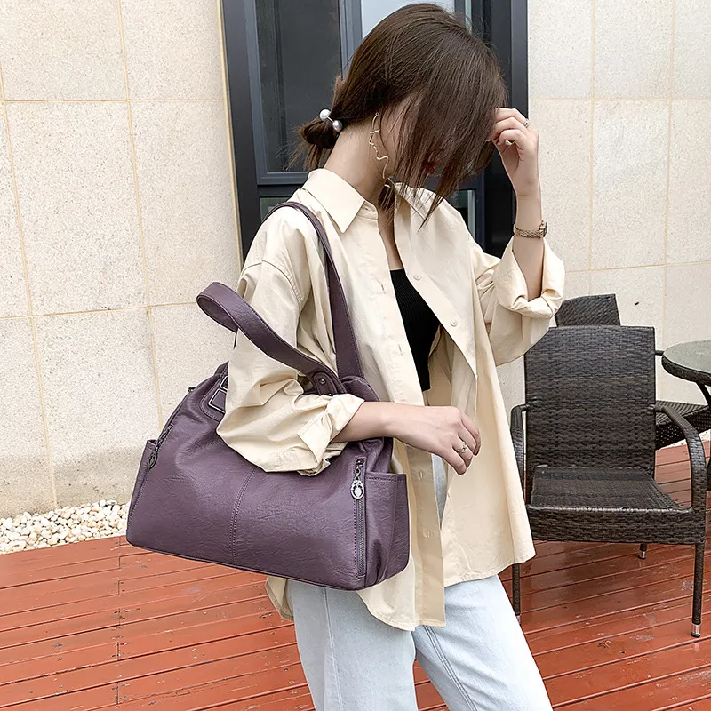 Soft Leather Large Capacity Women Hand-carrying Crossbody Bag Fashionable All-match