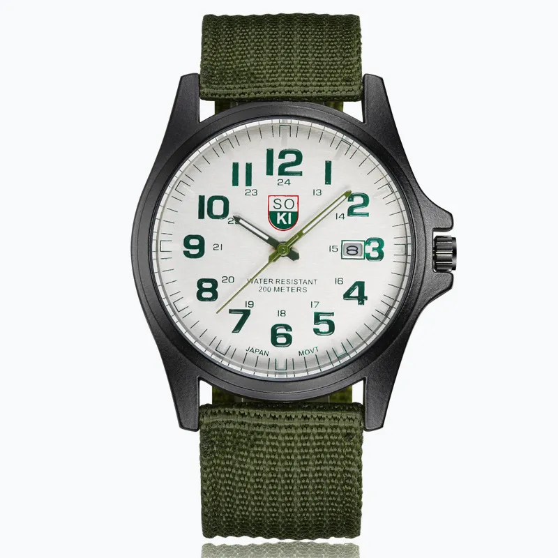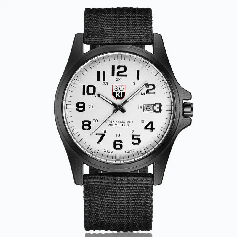 H1: SOKI Fashion Men's Military Watch with Woven Nylon Belt – Style Meets Durability
