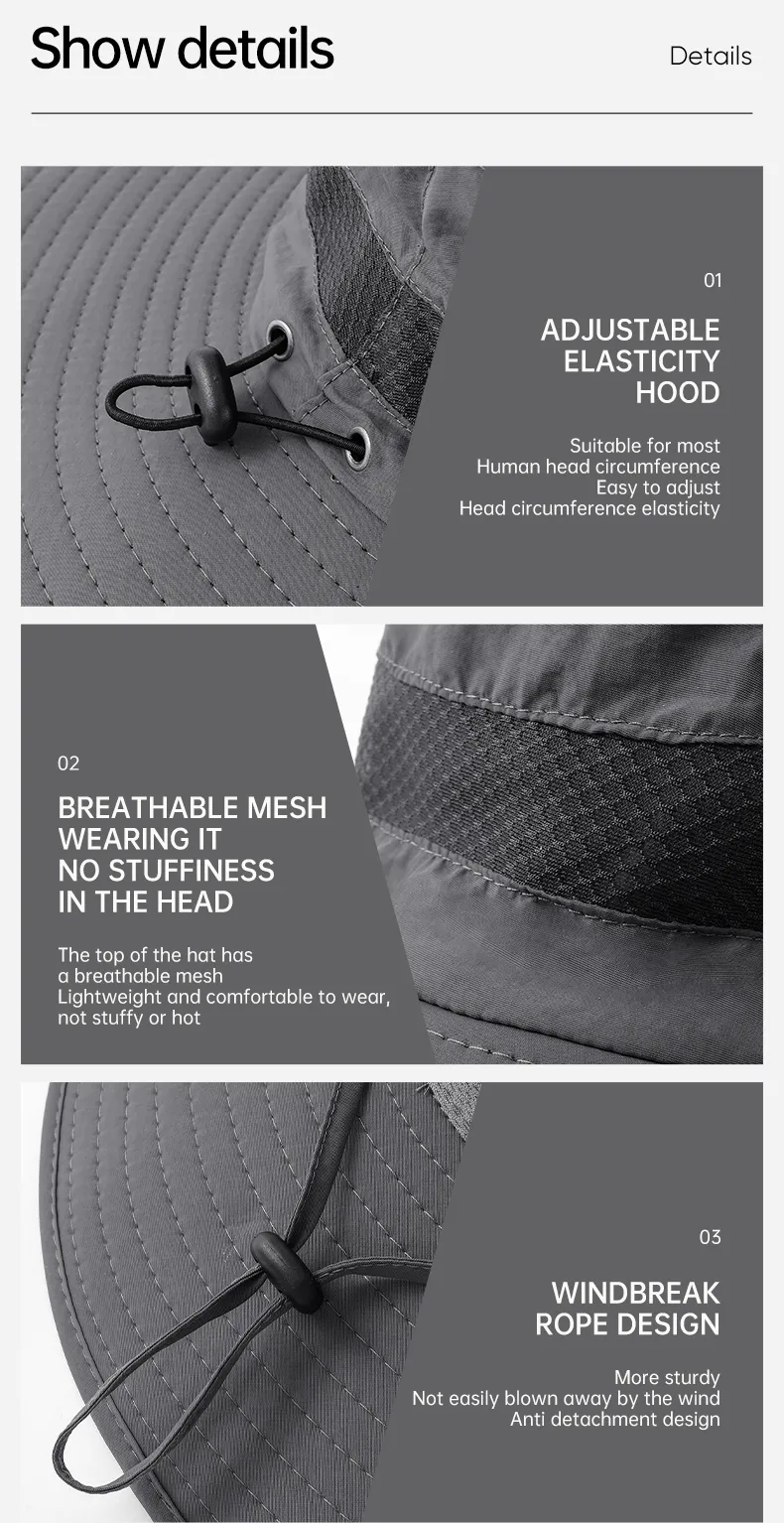 Sun Protection: Designed with a wide brim, this hat provides excellent sun protection for your face, neck, and ears,