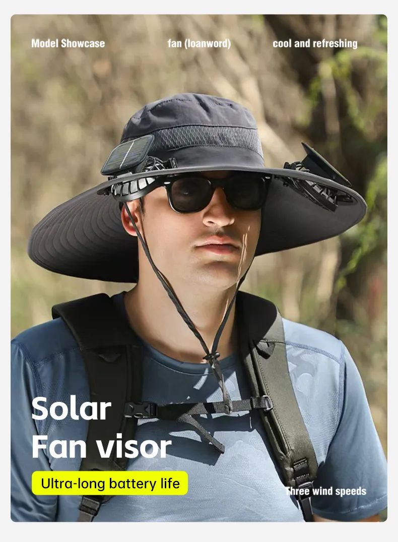 Effective Cooling Technology: The solar-powered fan ensures that you stay cool, even during the hottest outdoor activities.