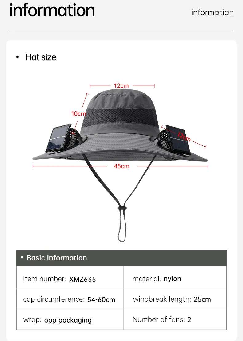 Effective Cooling Technology: The solar-powered fan ensures that you stay cool, even during the hottest outdoor activities.