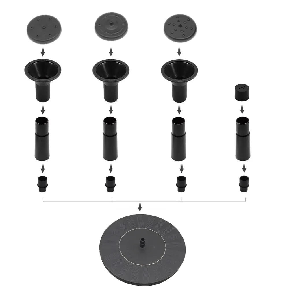 Solar fountain pump with 4 Nozzle Spray settings to create a relaxing environment. A solar water fountain is suitable for garden decoration,