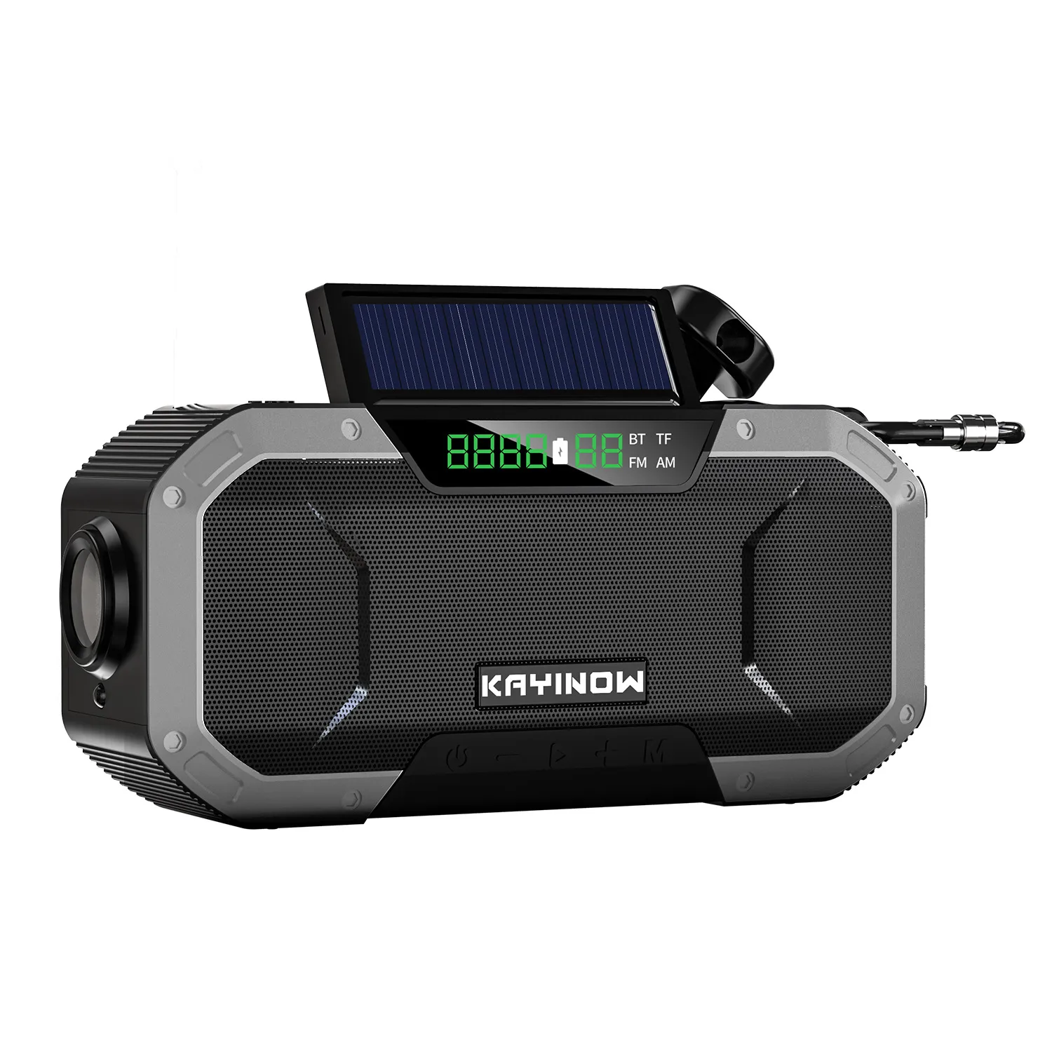 - Power Source: Solar power, USB charging, and hand crank (if applicable)