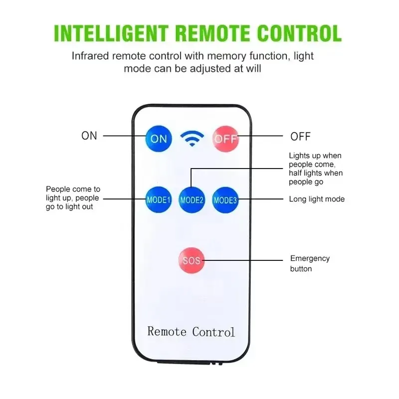2. Sensing range: The solar remote-controlled sensing wall lamp has a human body sensing function, which can automatically light up the light when the human body enters the sensing range.During installation and use, attention should be paid to adjusting the sensing range to ensure that human activity can be correctly sensed in areas that require lighting.At the same time, other objects or animals should be avoided within the sensing range to avoid accidentally triggering lights.