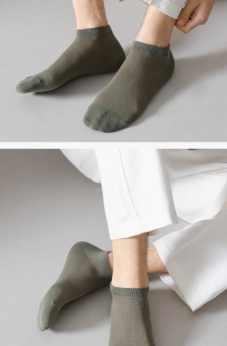 Made with breathable polyester, these socks are perfect for warmer weather, offering excellent moisture-wicking properties to keep your feet dry and comfortable. The simple solid color design ensures versatility, allowing these socks to be paired with any footwear, while the low-cut style remains discreet for a clean, no-show look.