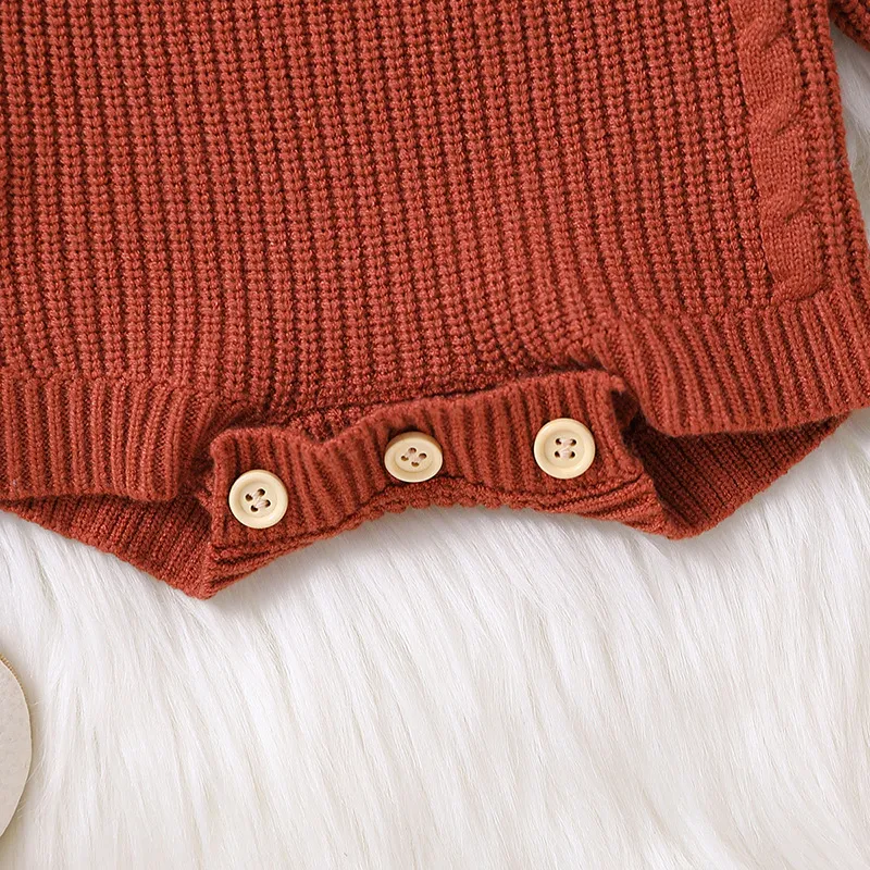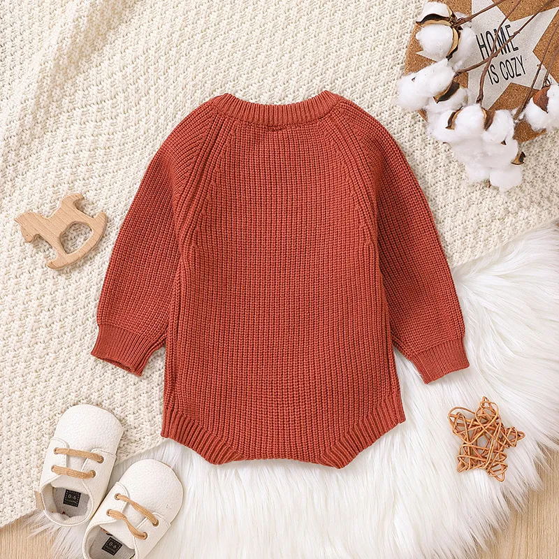 H1: Cozy Solid Color Long Sleeve One-piece Sweater Keep Baby Warm Romper