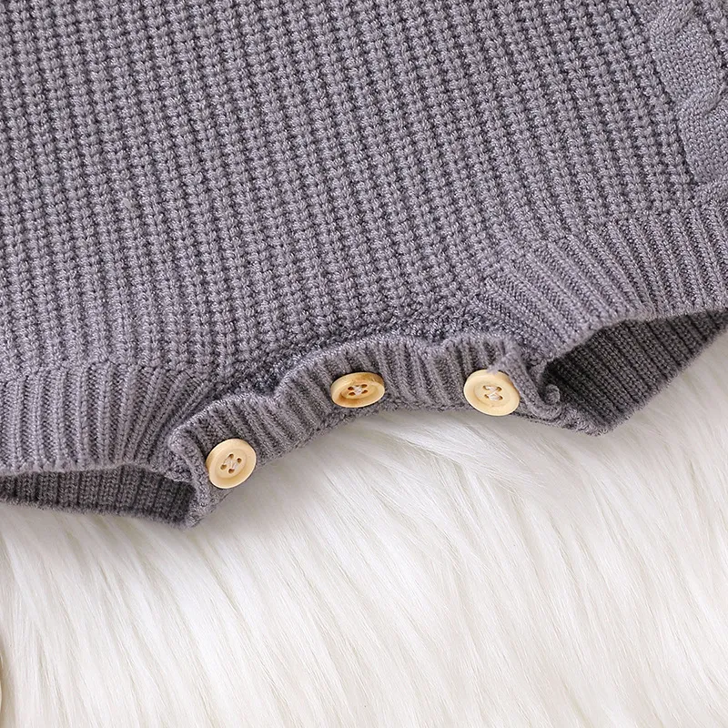 The Solid Color Long Sleeve One-piece Sweater Keep Baby Warm Romper is designed for easy care. It is machine washable and retains its softness and color even after repeated washes. The durable construction ensures that this romper can withstand daily use, making it a practical addition to your baby’s wardrobe for both wear and wash.