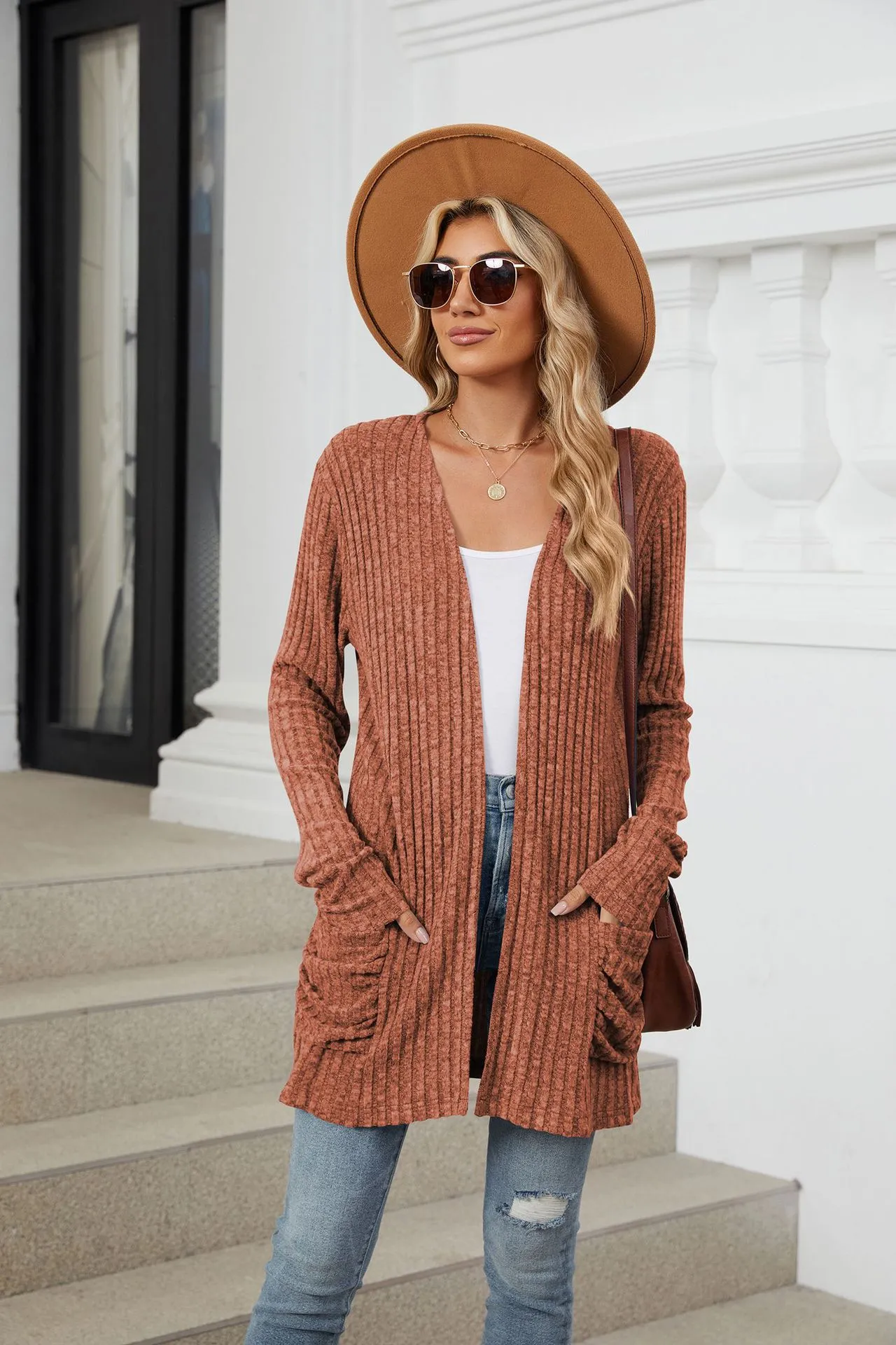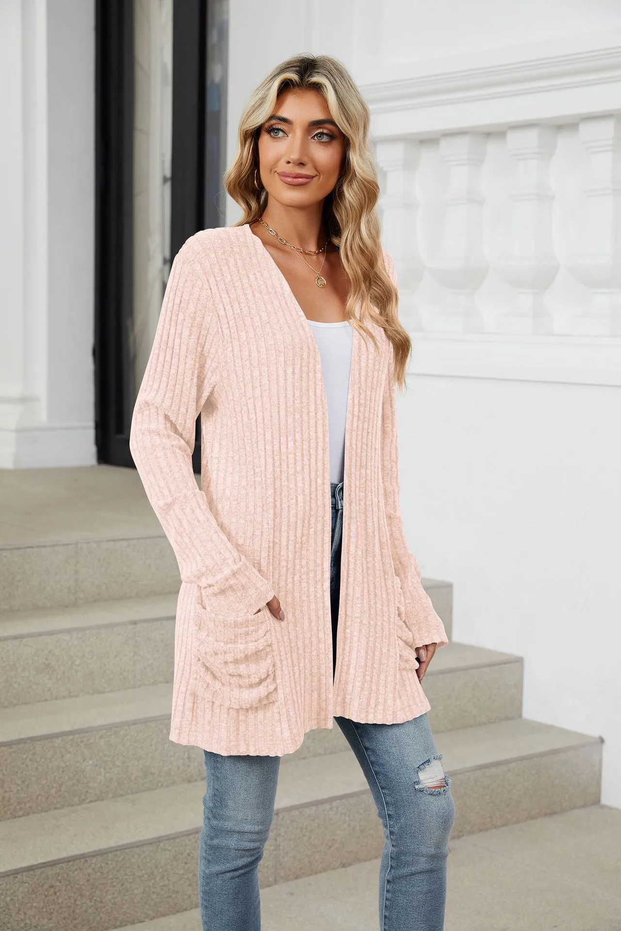 The Solid Color Pocket Long Sleeve Cardigan is incredibly versatile, making it a must-have for your wardrobe. It pairs well with jeans, leggings, or skirts, and can be dressed up or down depending on the occasion. The neutral solid color options make it easy to mix and match with different outfits, ensuring that this cardigan will quickly become one of your go-to pieces for any season.