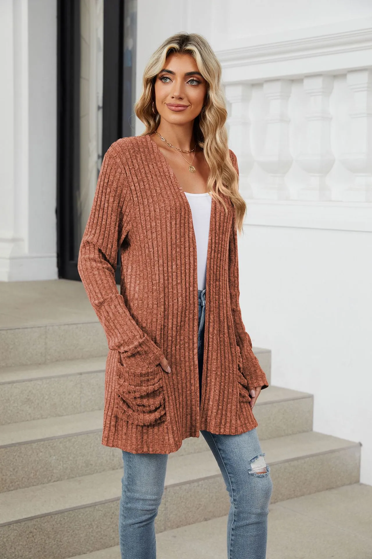 Elevate your layering game with the Solid Color Pocket Long Sleeve Bottoming Cardigan Knitwear. With its blend of comfort, style, and practicality, this cardigan is the perfect addition to any wardrobe. Don't miss out on this versatile piece—add it to your collection today and enjoy the perfect combination of warmth and style.