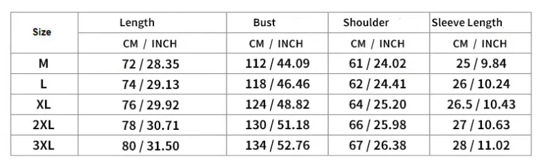 Size: M,L,XL,XXL,XXXL