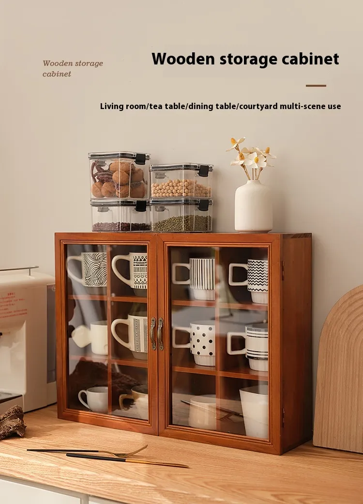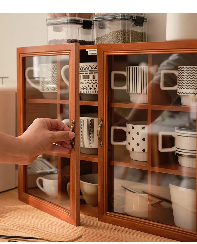 Solid Wood Vintage Desktop Cup Storage Cabinet Display Stand: A Timeless Display for Your Favorite Cups and Mugs