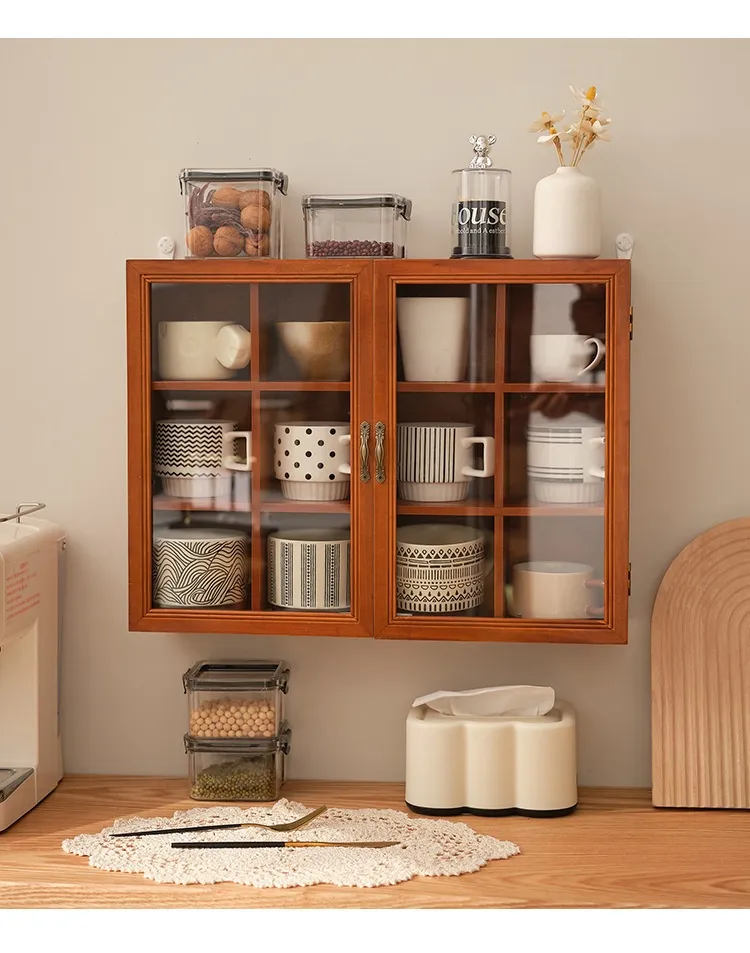 In this product description, we’ll explore the key features and benefits of the Solid Wood Vintage Desktop Cup Storage Cabinet Display Stand, making it an essential item for any home or office.