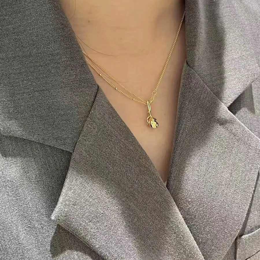 Sparkling Rose Asymmetric Panel Necklace