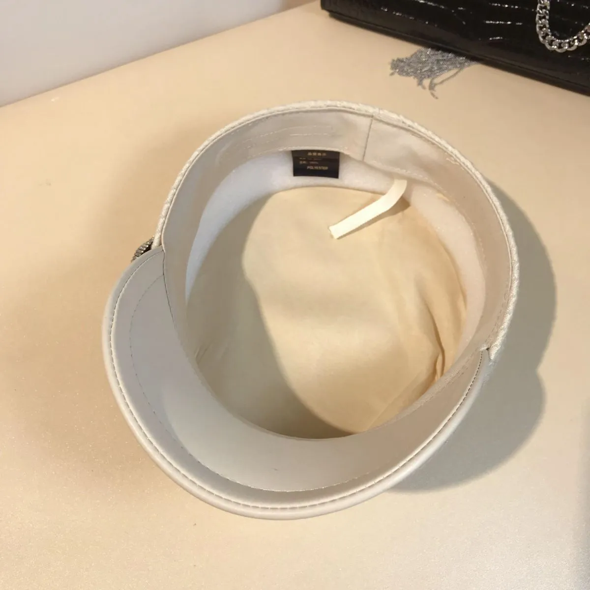 Splicing Socialite Flat Top Rhinestone Bow Navy Hat Female